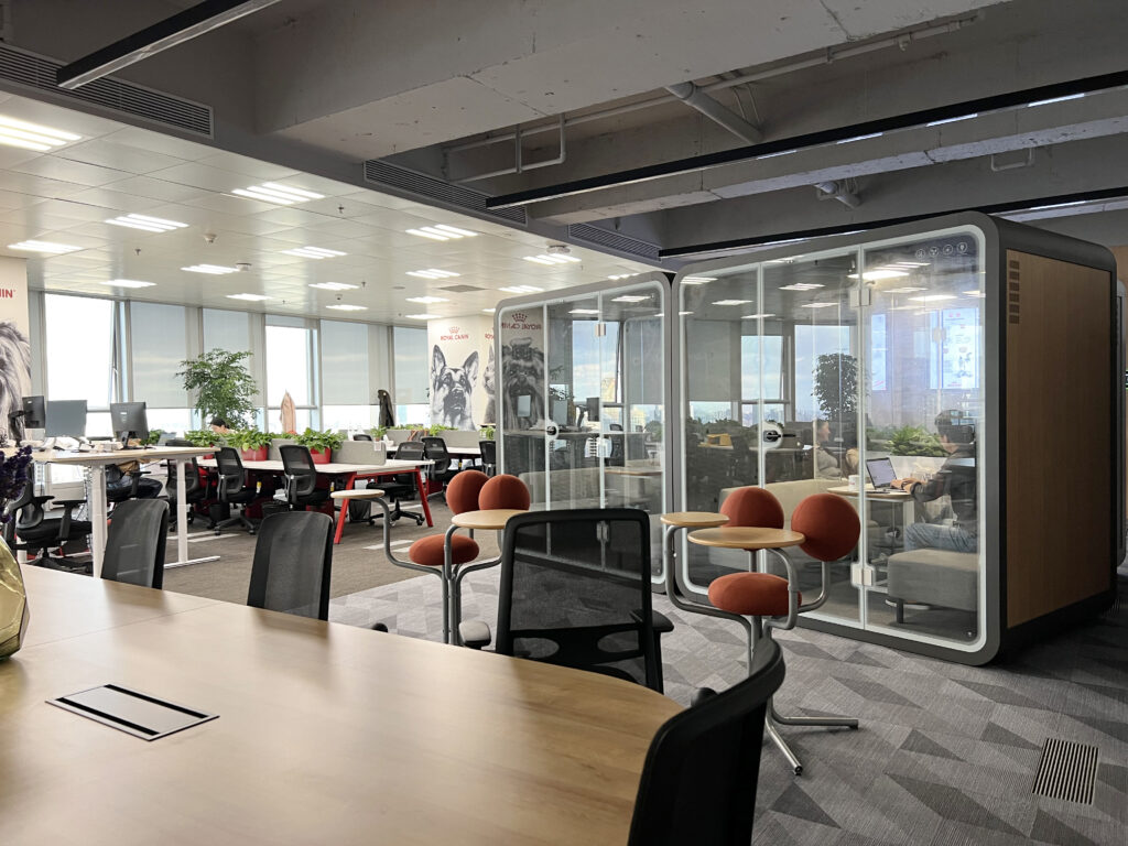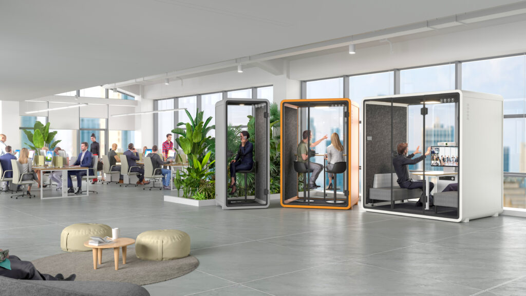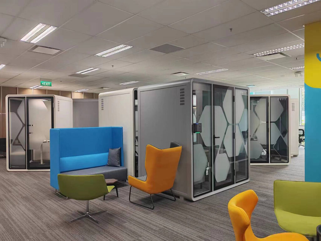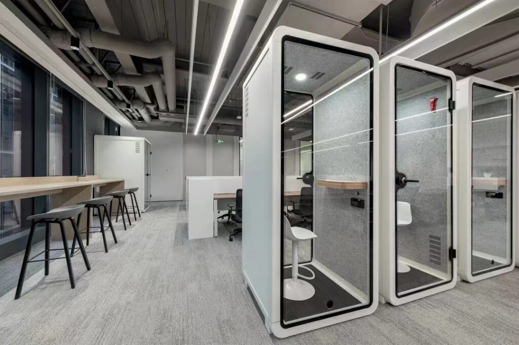 开放办公区虽然提高了员工之间的协作效率,但缺乏了一些隐私和个人空间。特别是在有隐私级别高的电话,会议时。对此,声博士提出了独立空间解决方案——静音舱