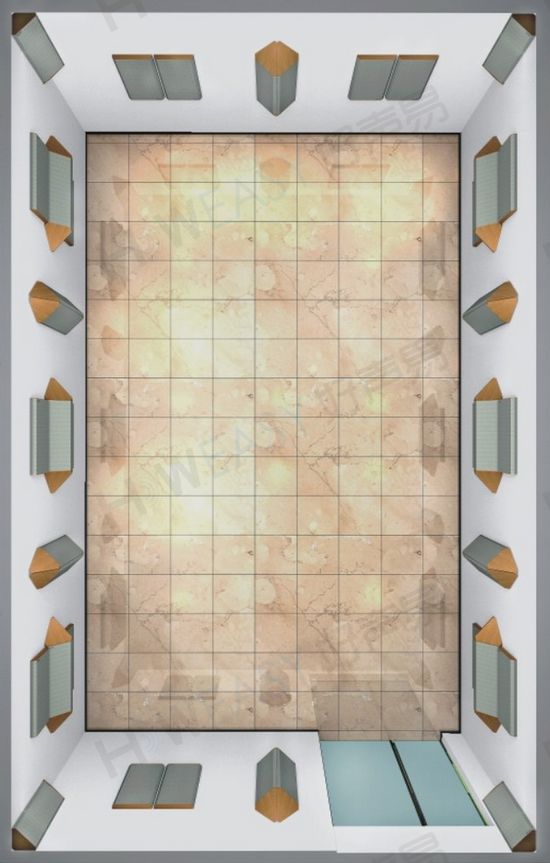 在餐廳中加入矮牆隔斷,有利於提高房間總表面積,進而使混響半徑增長,也有利於阻擋部分直達聲。矮牆隔斷必須與吸聲吊頂同時使用才會改善混響半徑,進而減少遠處傳來的混響聲,防止人群產生越來越高的嘈雜聲。矮牆隔斷設計高度在1.3m左右即可,與人們坐高接近,為了有良好的視線效果,矮牆隔斷上部可以是玻璃或半鏤空的。