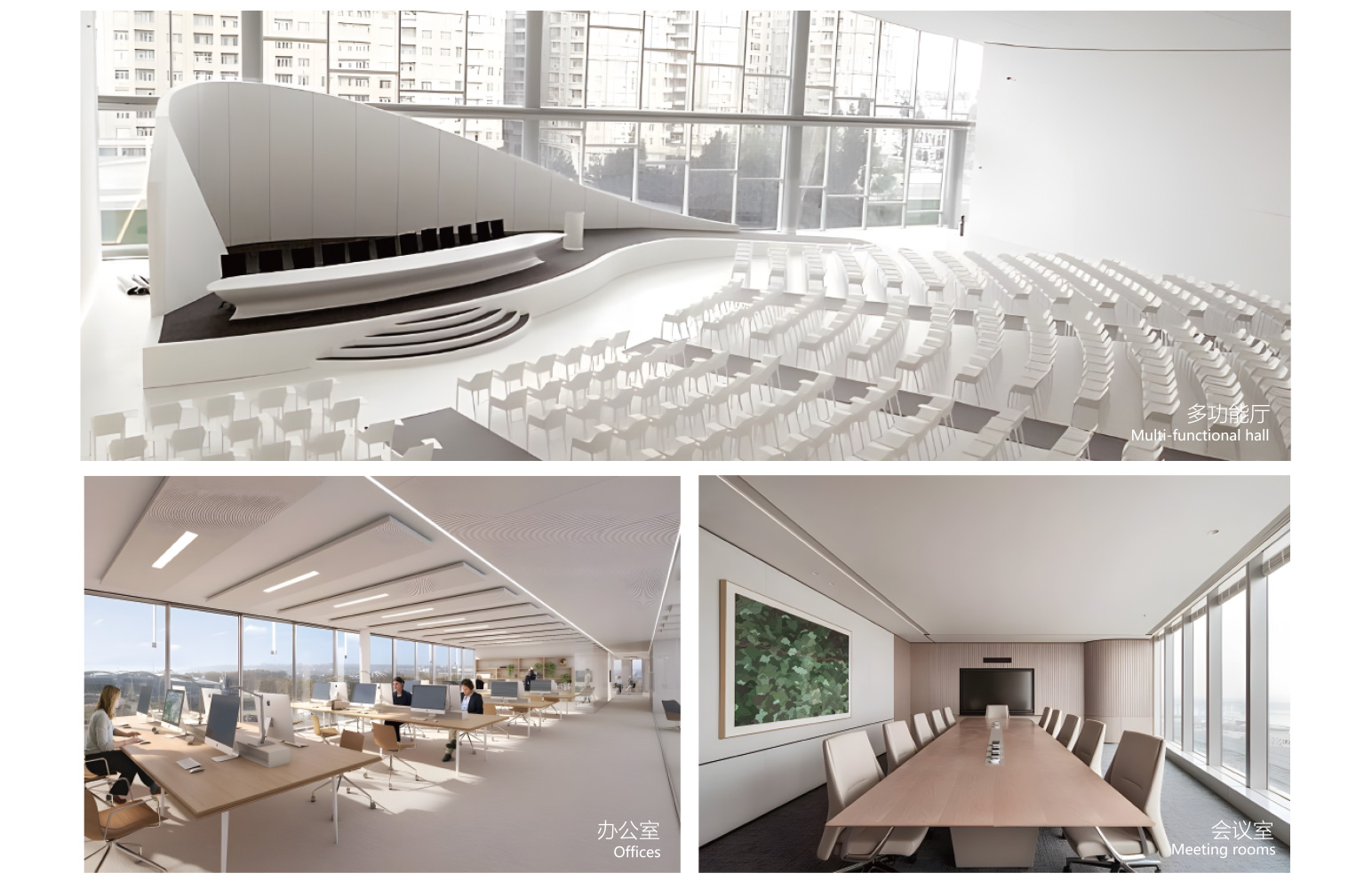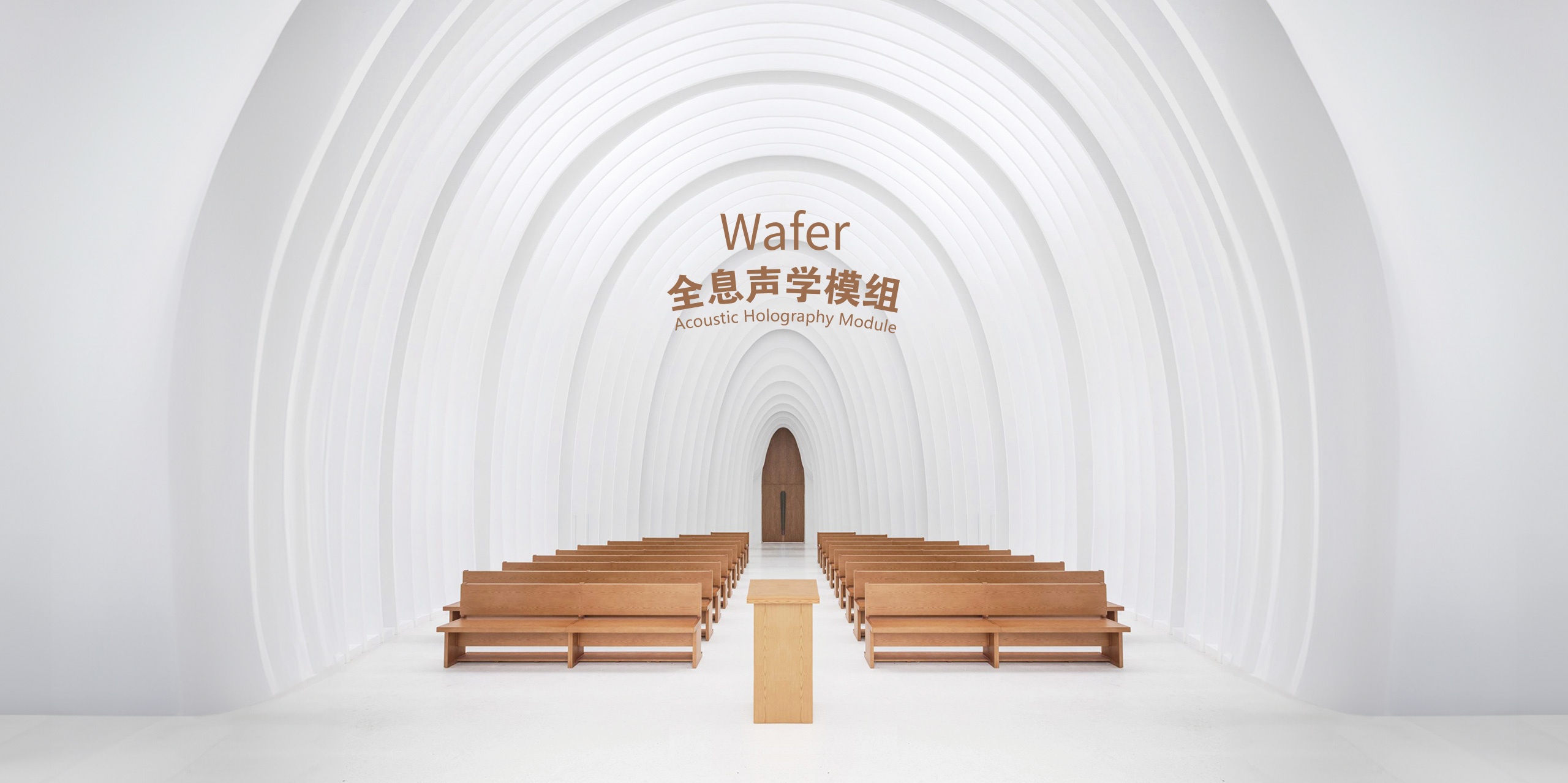 “Wafer全息声学模组”基于二氧化硅透气融合技术,由无机矿纤维混合料微发泡定型“吸声基板”,表层涂装80um“纳米微孔吸声涂层”构成。