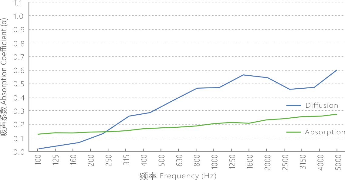 主要特点: 本系列产品扩散效果好,改善混响时间显着。声学特性达到国家同类材料标准,有效提高环境音质饱满度,清晰度及立体感