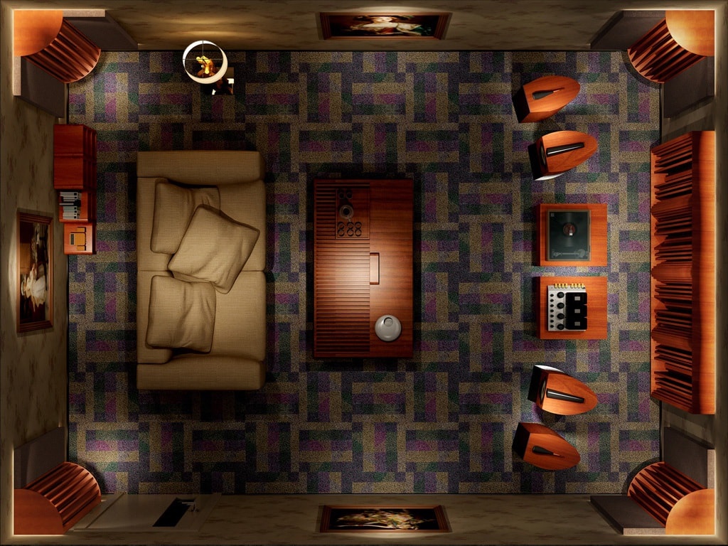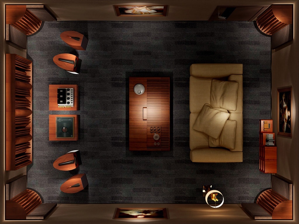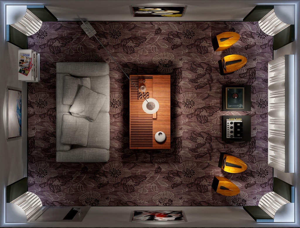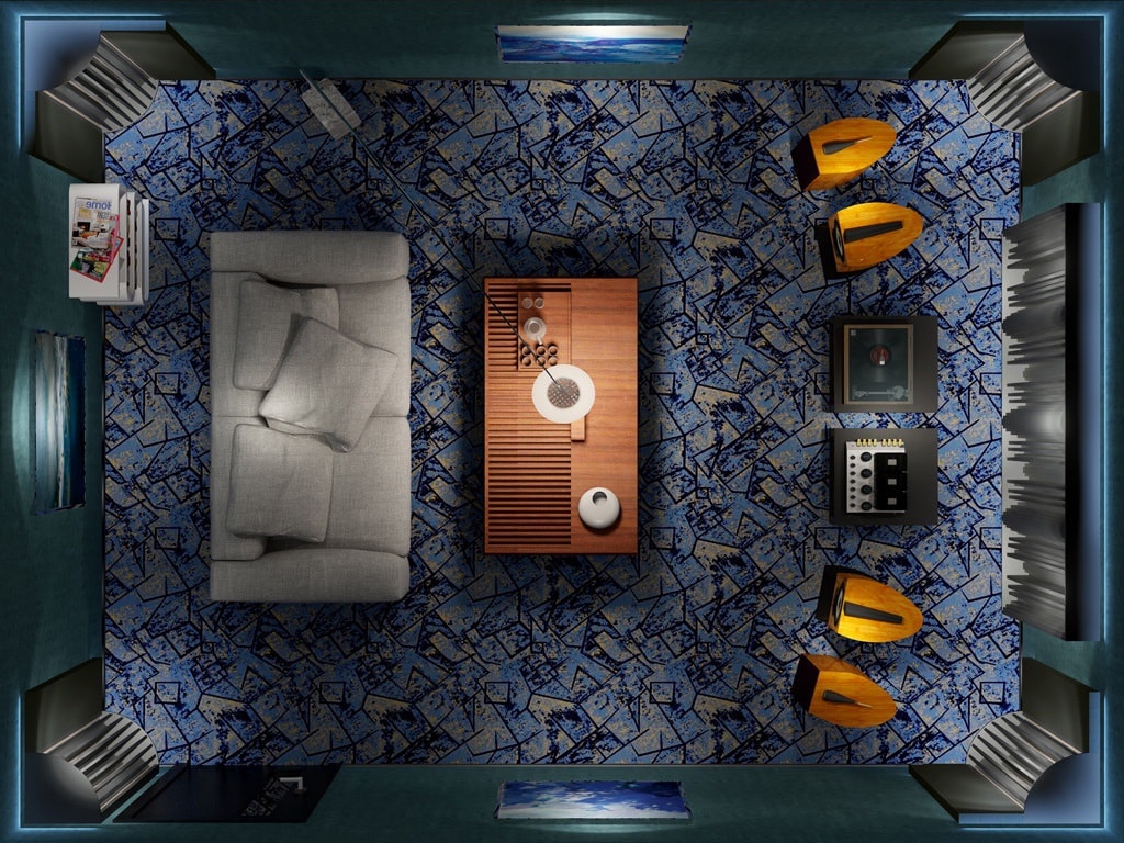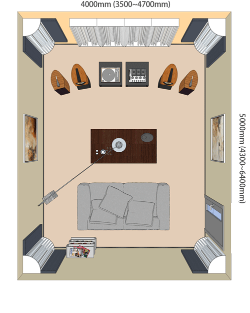 组合特性:正墙大面积QRD宽频扩散组合,容易形成驻波的4个墙角安置调谐板配合角位低频陷阱构建强大的余量吸收组合