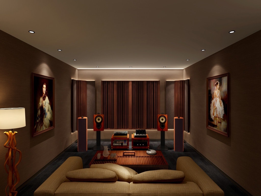 Combination: Front wall– Extensive QRD broad band diffusers combination, walleasears with bass traps at four corners to form a powerful excess frequencies absorption
