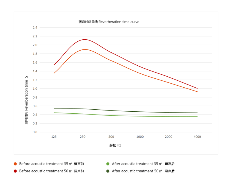 Acoustic Properties: The curve diffusing surface is superimposed onto three octaves, with 20% different slot for absorbing broadband frequency. Three low-frequency cavities in the different volume are set inside, filled with green acoustic material to absorb margin low frequency from 250-550 Hz. This curvefuser scatters reflected sound fully in a way that does not only save sound energy consumption but also obtains a relatively balanced acoustic environment.
