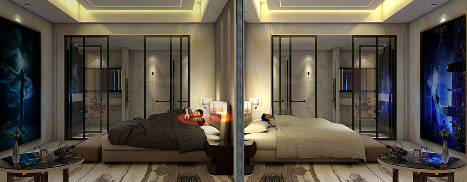 发泡空心砖、轻质间墙板等原墙结构,无法满足酒店空间隔声指标需求,不拆除破坏原有墙体,构建增强隔声层成为解决问题的首选。