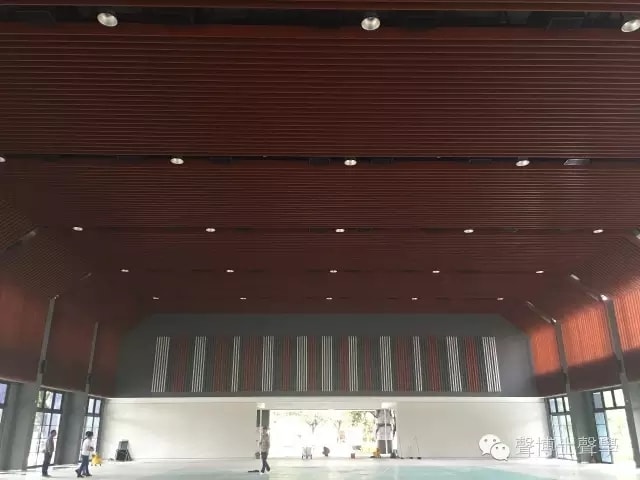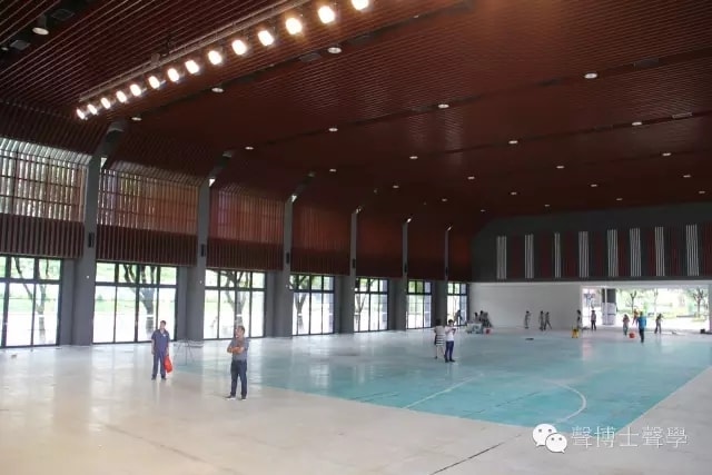本次广东顺德德胜学校体育馆声学升级重新定位为一个授课、学术报告、歌唱比赛、文艺演出、播放电影等多功能活动场所,因此在进行声学装修设计时,既要满足这些功能的要求,又要考虑网架结构载荷对吸声材料重量及安装方式的限制,对原来的围护结构和建筑构件不能做大的变动,以保持原来的建筑风格。
