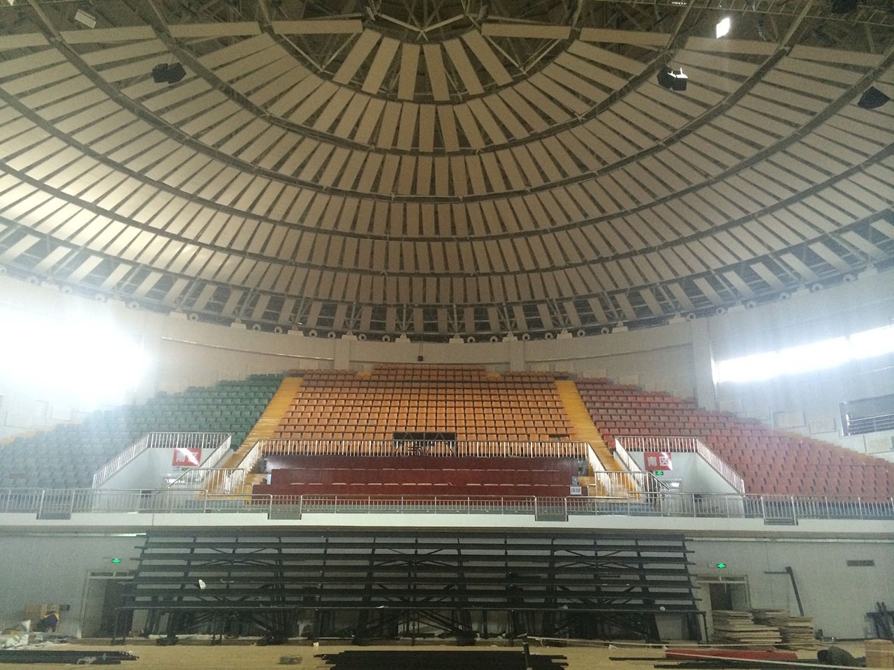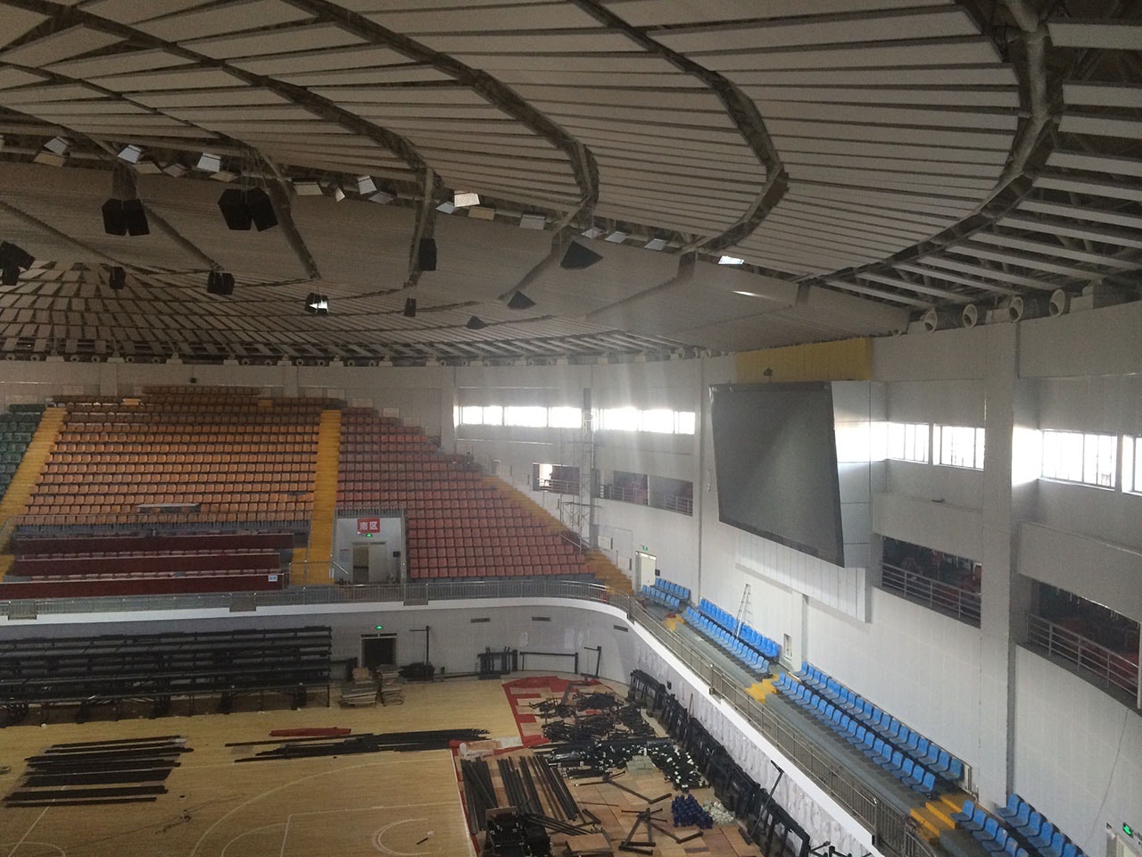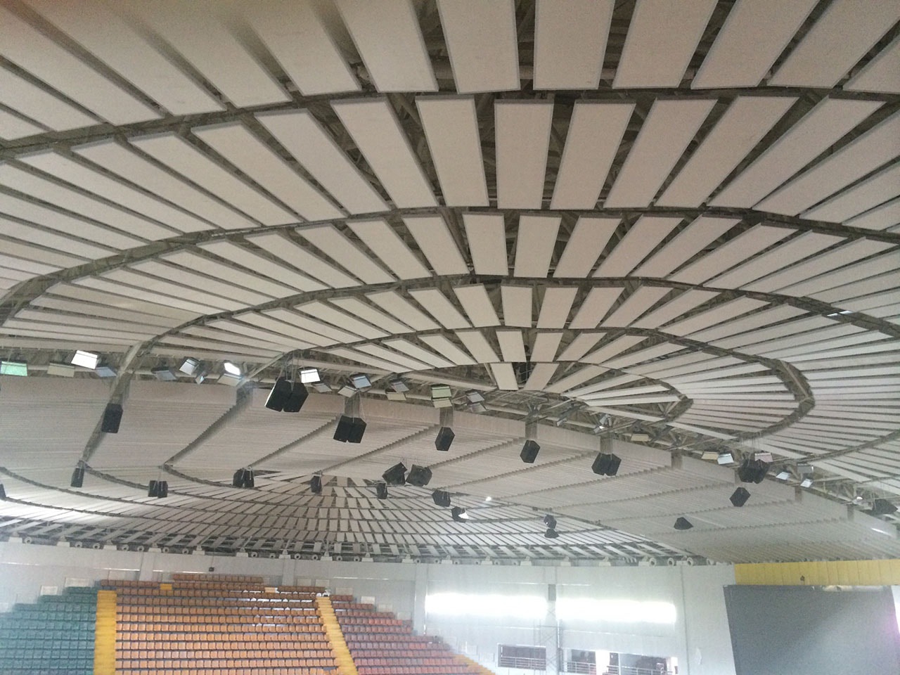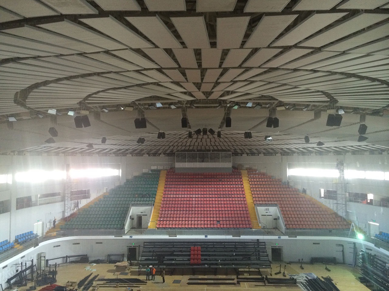 声博士声学工程技术人员,依据《GYJ125厅堂扩声系统声学特性指标》、《场馆建筑设计规范》及甲方的要求。在进行方案设计的计算过程中充分考虑到各种建声要素,利用有效表面和空间,合理选择、优化设计和配置吸声材料,对必要和适当的部位进行恰当的声学装修处理,以此来调控混响时间,消除音质缺陷,使比赛场馆获得高性价比的理想音质效果。
