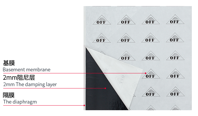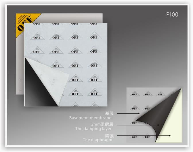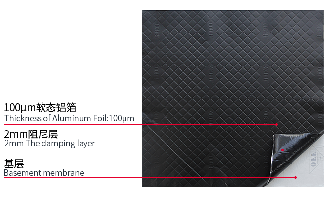 - 2mm阻尼层,表层复合100μm软态铝箔,密度达4.2kg/m,非等量复合材质符合隔音质量定律;