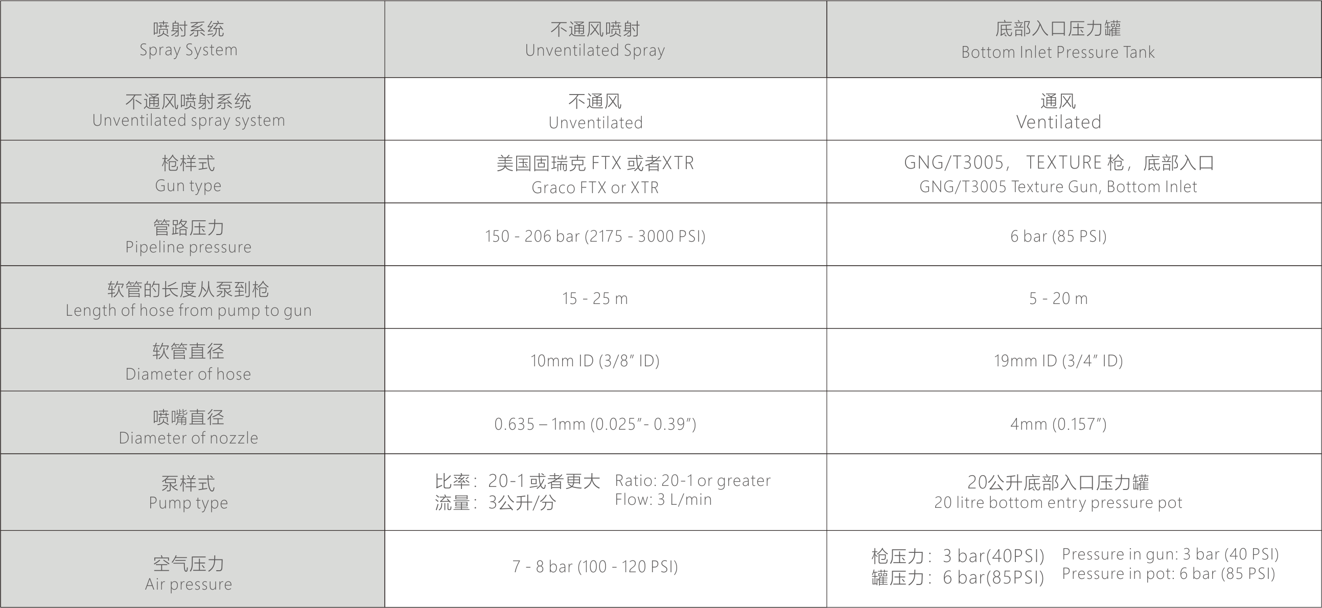 无气和空气喷淋系统请查看以下图表