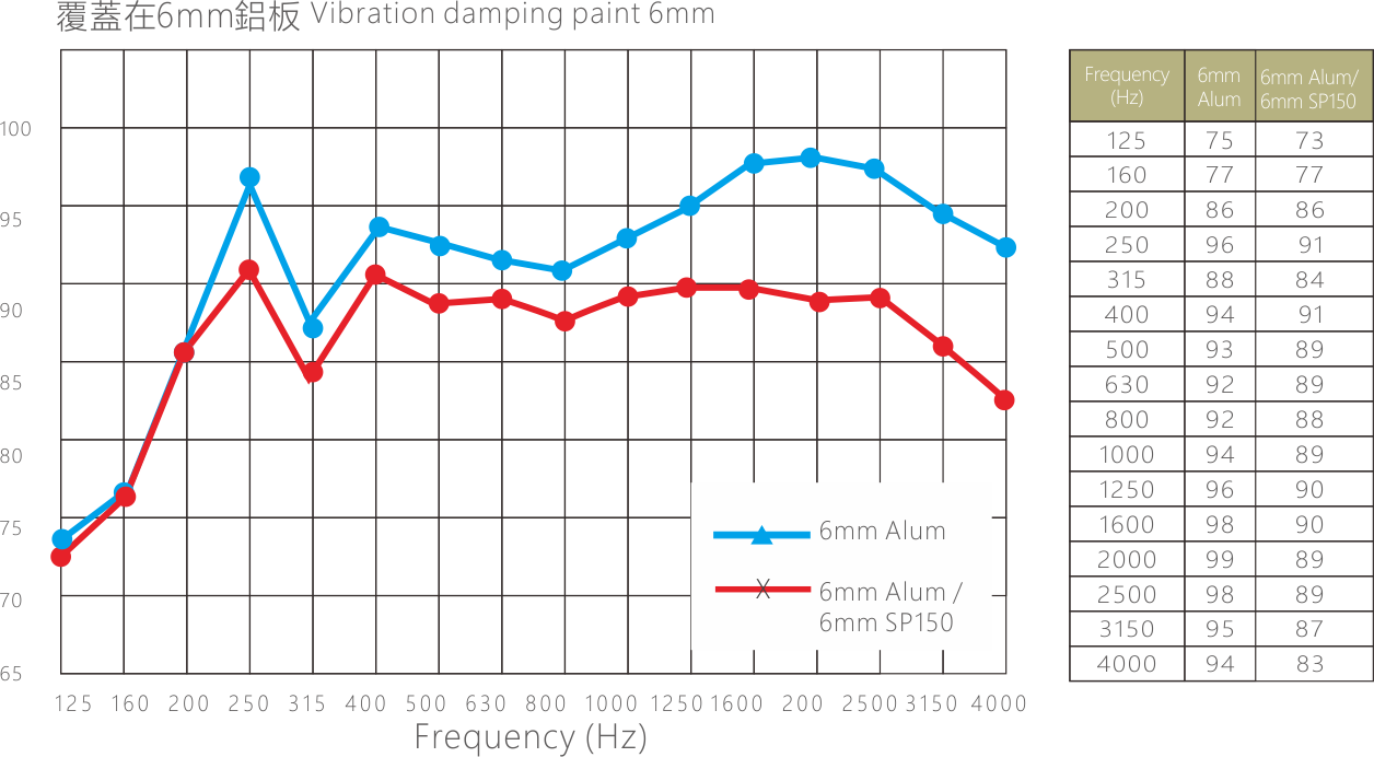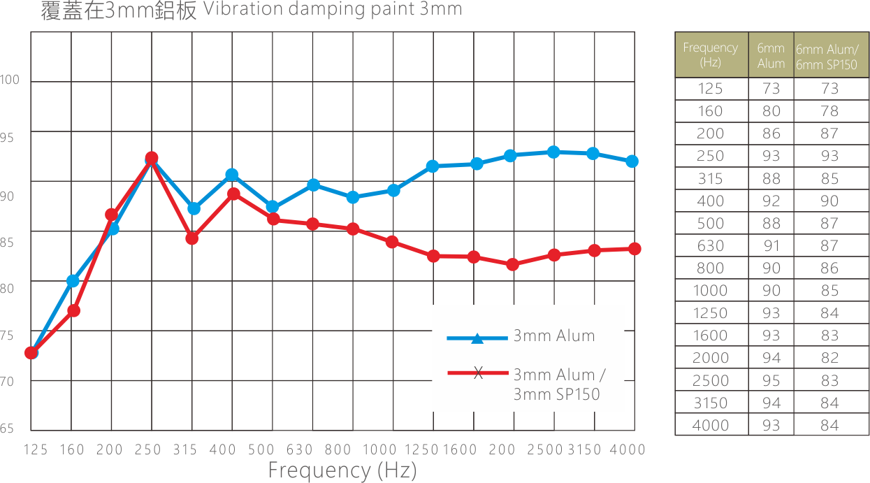 - 有效地减少了共振,使板面谐振效应减少而增加传输损耗,显著控制原基材共振频率而提升隔声量。