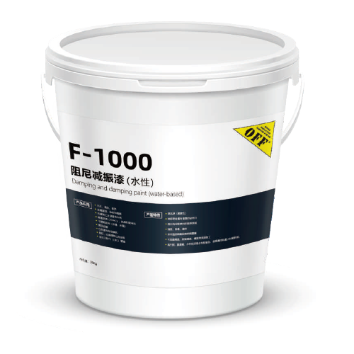 - F-1000高固体水基粘弹性减振阻尼漆。不同于常规阻尼材料,F-1000是一种低密度的产品,干膜重量较轻的前提下高阻尼性能,振动吸收结合粘性(能量耗散)和弹簧(能力储存)特征,振动能量被吸收材料内并转化为热量。
