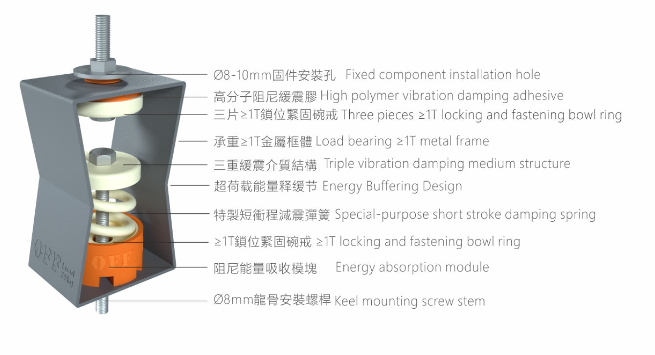 OFF独特的超负荷能量缓释节设计,减振器的瞬间超出最大荷载时仍释放构件缓振。